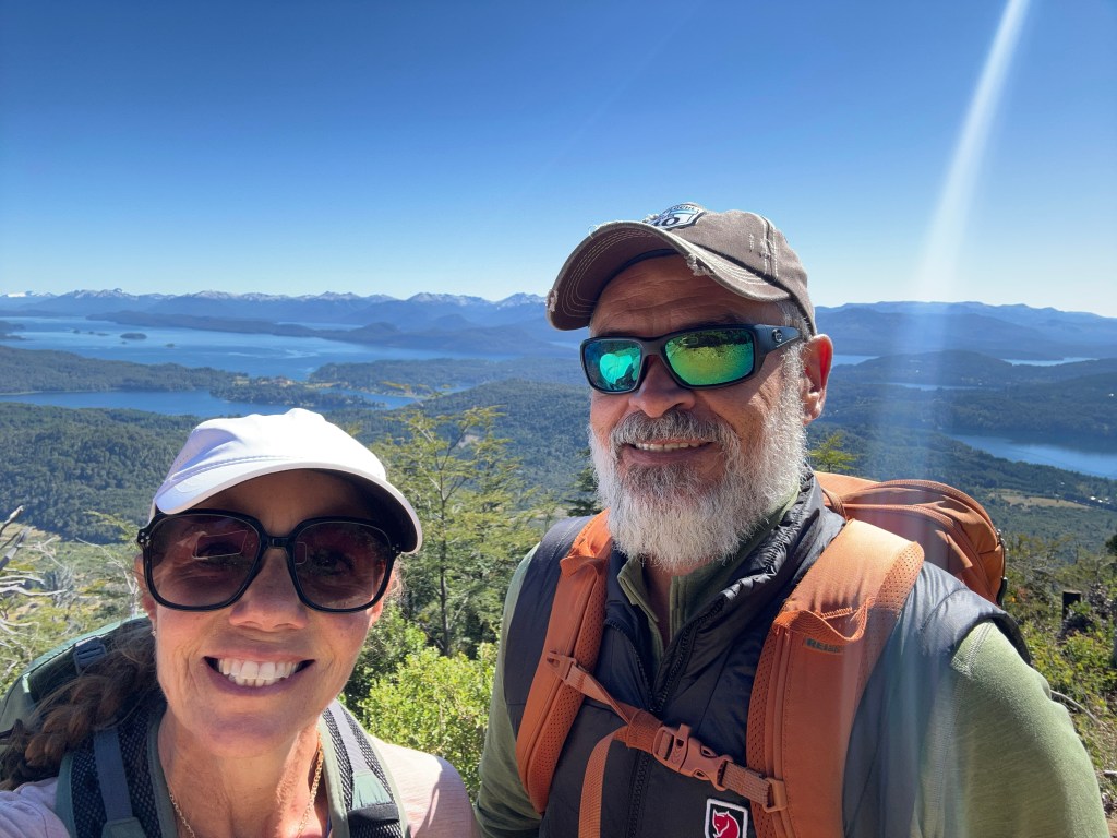 The hike rewarded us in many ways. The views were incredible, and the forest offered fields of various wildflowers and centennial trees. We met an older local couple on their way up. They were older than us, but it appeared they were in better shape and had hiked this particular trail many times. They even said they had done it once in snowshoes! They were lovely, and we spoke for almost half an hour. They shared their best hiking recommendations in Bariloche, recommended books by Argentinian writers and contemporary Argentinian movies, and gave us tips on where to buy the best food and how to avoid speeding tickets.