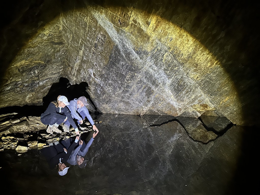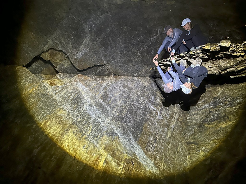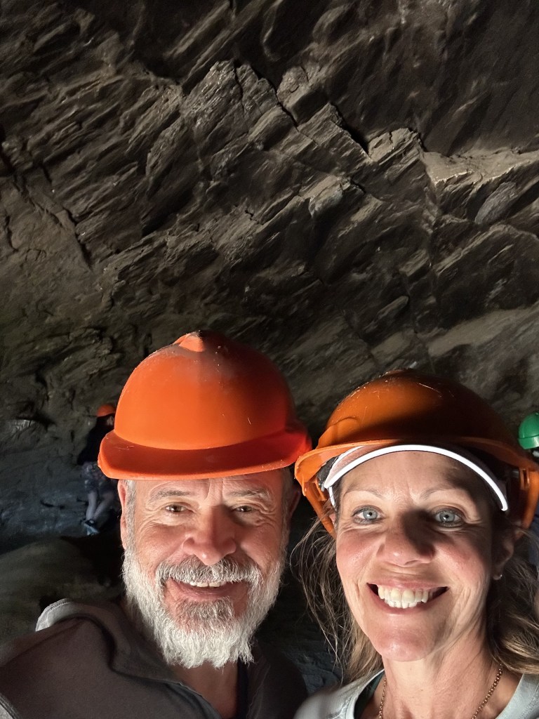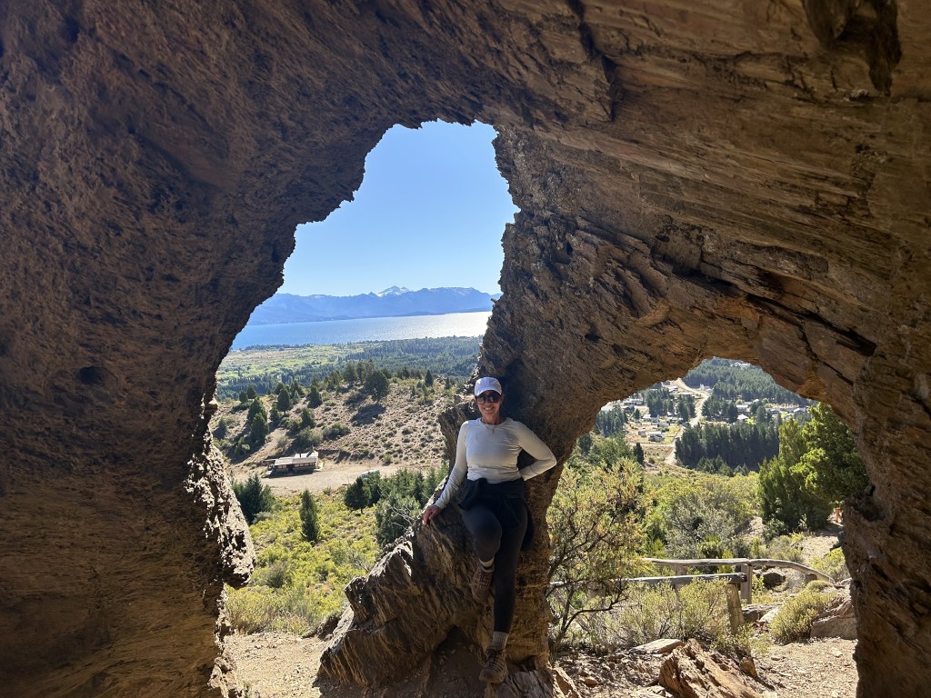 Today, we visited Las Cavernas del Viejo Volcán (The Caverns of the Old Volcano). This extinct volcano existed over 150 million years ago, underwater, before the Patagonian Mountains were formed. Its underwater volcanic vent expelled magma, which was rapidly cooled by the surrounding seawater. This rapid cooling trapped large gas bubbles, which formed the caves we see today. We saw evidence of how indigenous people used the caves for shelter and how Patagonian mountain lions came to inhabit them in the hundreds. They were so abundant that the area was named Cerro Leones (Hills of Lions). This area is very close to the village of Dina Huapi. We visited three main caverns, but the most impressive was the last. To reach it, we had to crawl about 15 to 20 feet through a space barely three by four feet wide. Once inside, our guide allowed us time to explore, and at one point, we experienced total darkness and silence for thirty seconds. At the bottom of this large cavern, we walked toward a crystal-clear lake where we took pictures. The water is so perfectly still and clear that the image can be rotated 180 degrees and perceived equally well upside down. The Cavernas del Viejo Volcán were a tremendous surprise; we thoroughly enjoyed them, and no visit to Bariloche would be complete without a visit here.