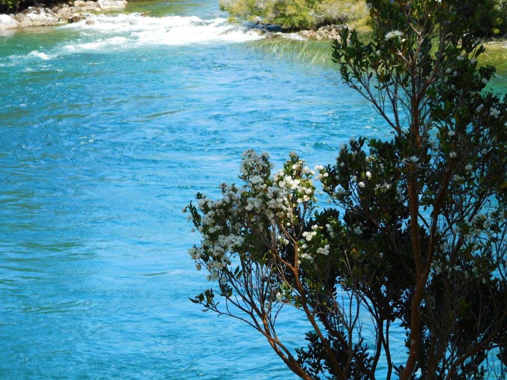 Continuing past Puerto Chucao, we witnessed something incredible—the lake began to narrow, forming rapids of stunning turquoise-green and blue waters. We completed our hike by descending to the beach under the bridge, where we lay down, using our backpack as a pillow. The sound of rushing water nearby and the warmth of the sun on our faces lulled us into a quick nap.