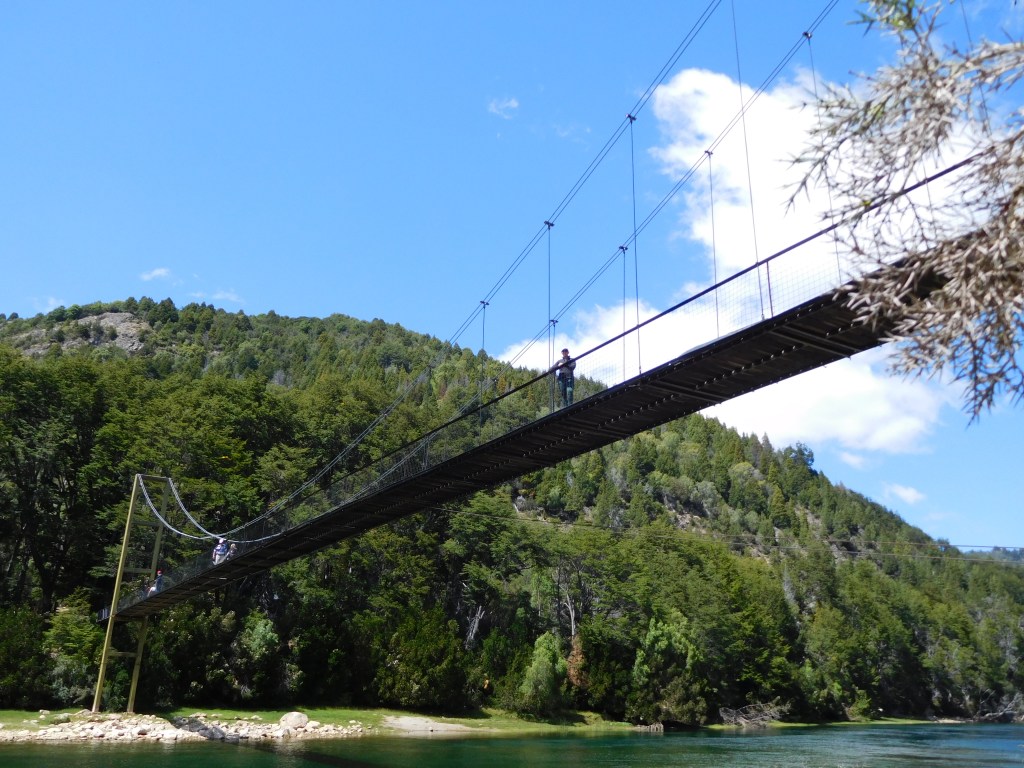 The trail is an easy 3.8-mile walk with very little elevation gain. Shortly after starting, we came across a provisions store and café—hiking in Argentina means you’ll never be caught hungry! The trail continued to the right, crossing a sturdy steel suspension bridge before leading into a loop. At this point, we had the option to go left or right; we chose to go right.