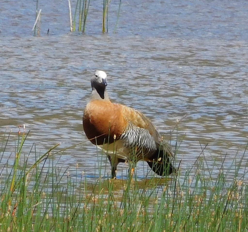 The trail is well-shaded, lined with many Chilean Myrtles on both sides. These trees are unique, with smooth orange bark that peels to reveal a distinct pink hue. As we approached Puerto Chucao, we walked down to the beach for lunch and were rewarded with a breathtaking view of Cerro Torrecillas, with the prominent Torrecillas Glacier towering above Lake Menéndez. Near Puerto Chucao, we spotted majestic Ashy-Headed Geese.