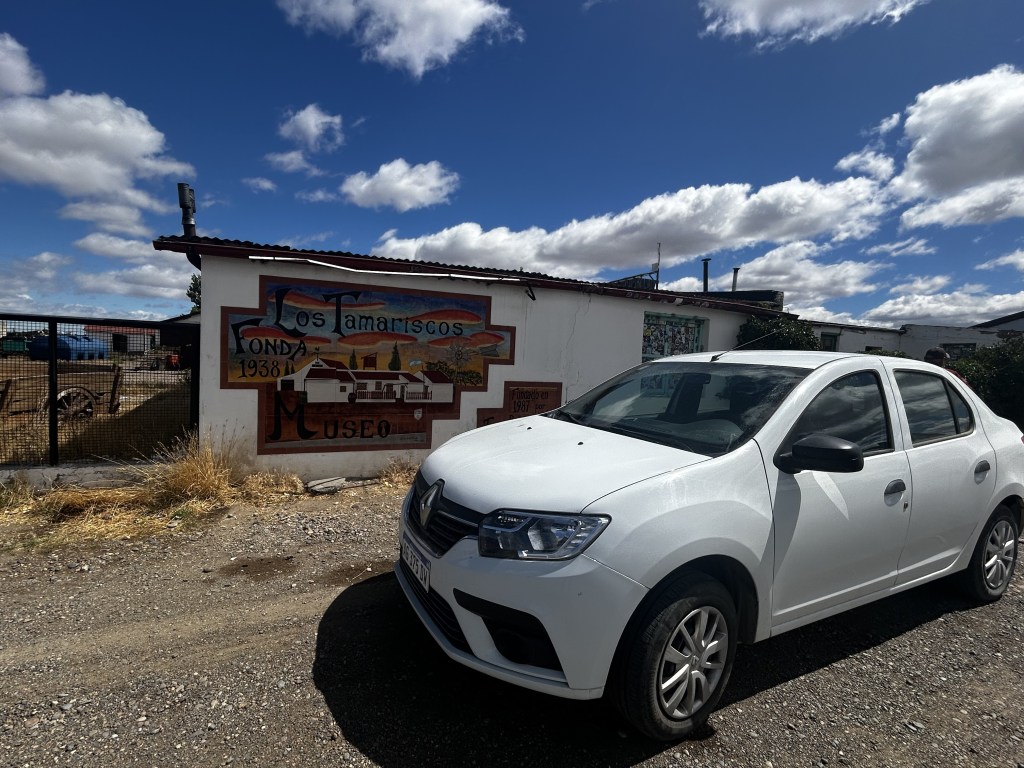 The wind never relented, and then a sign appeared: “El Camino tiene Baches.” (The road has potholes.) What an understatement. For the next 50 miles, the road was a complete disaster—more like a battlefield struck by aerial cluster bombs. These weren’t just potholes; they were moon craters. At times, the road vanished entirely, forcing us onto gravel detours riddled with large mud puddles and deep indentations. Our poor Renault Logan struggled through it all. Progress was slow, tedious, and at times, terrifying. We even saw a car with a front wheel cleanly sheared off its axle.