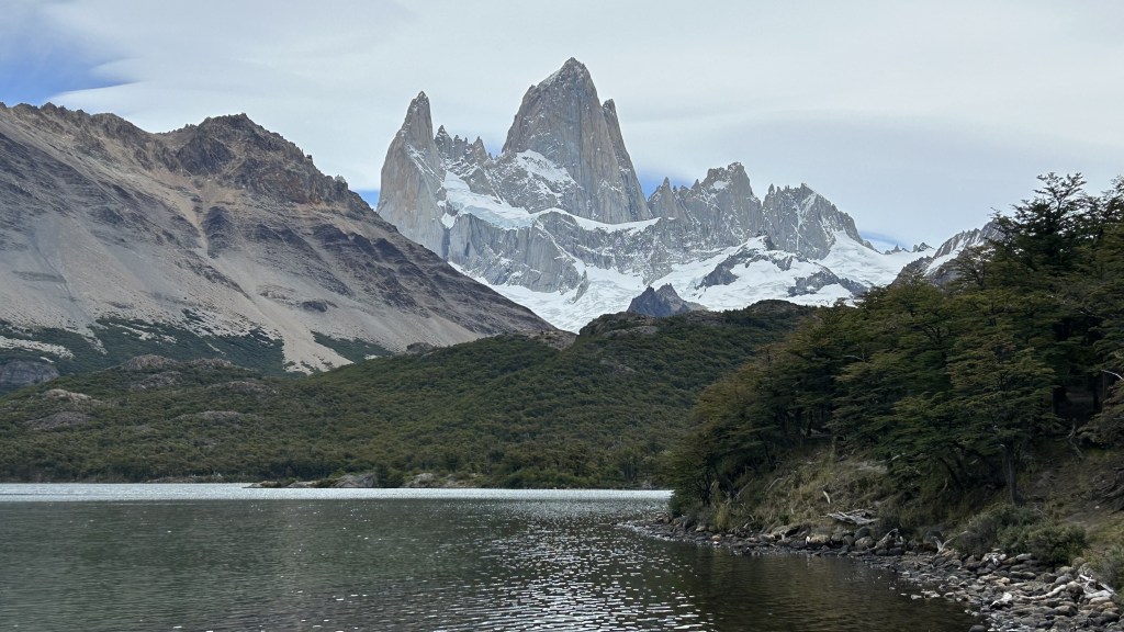 The trail continues with Río Las Vueltas on your right and several beautiful views of its winding course. After the first couple of kilometers, Fitz Roy and its surrounding peaks appear in the distance. Soon after, you arrive at the lake. Laguna Capri is tranquil and appears to support a nearby campsite. We enjoyed a snack before heading back into town.