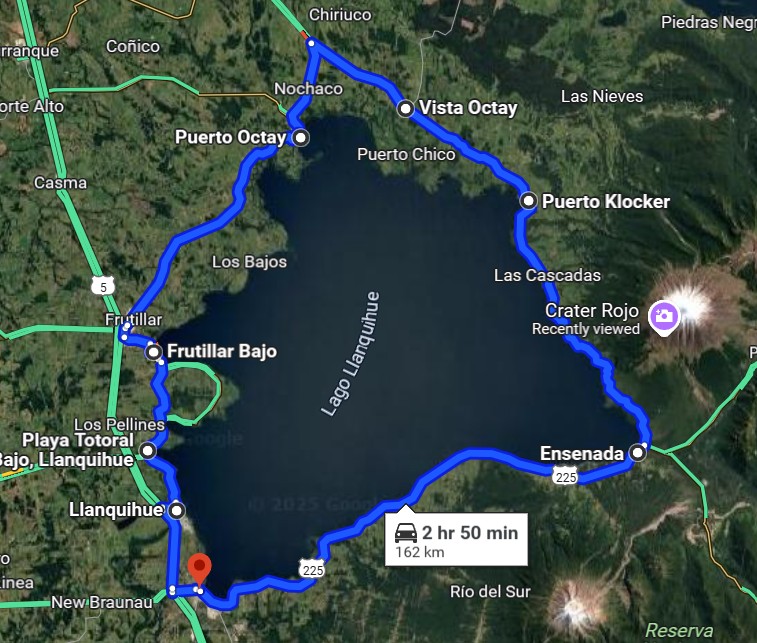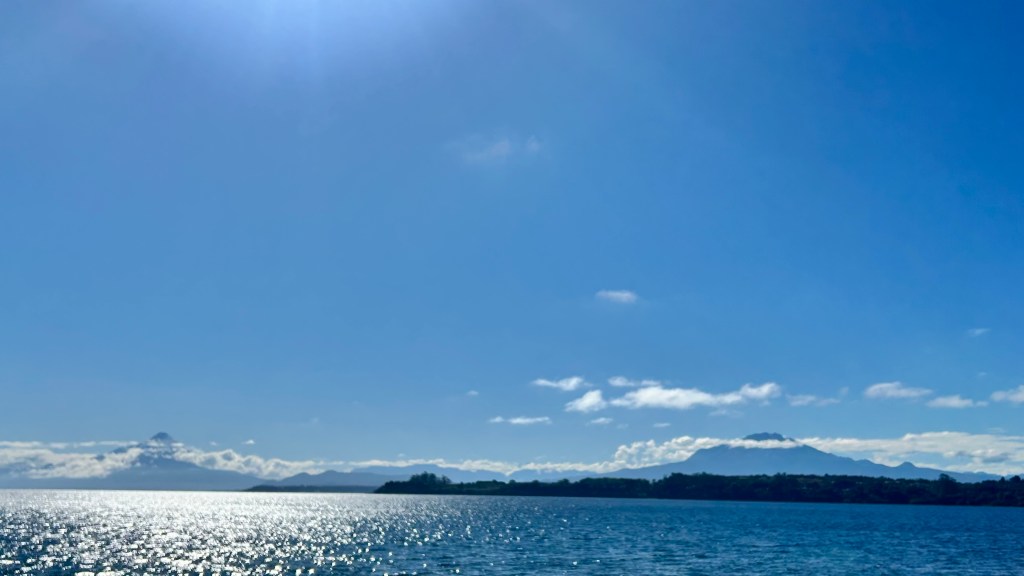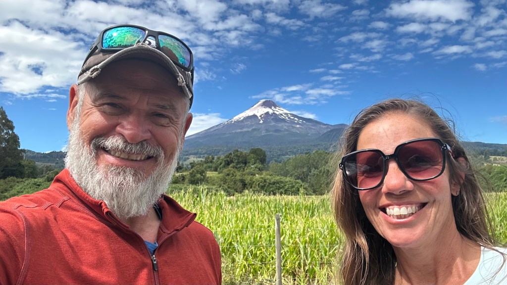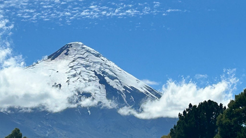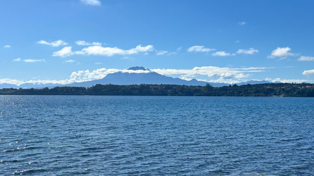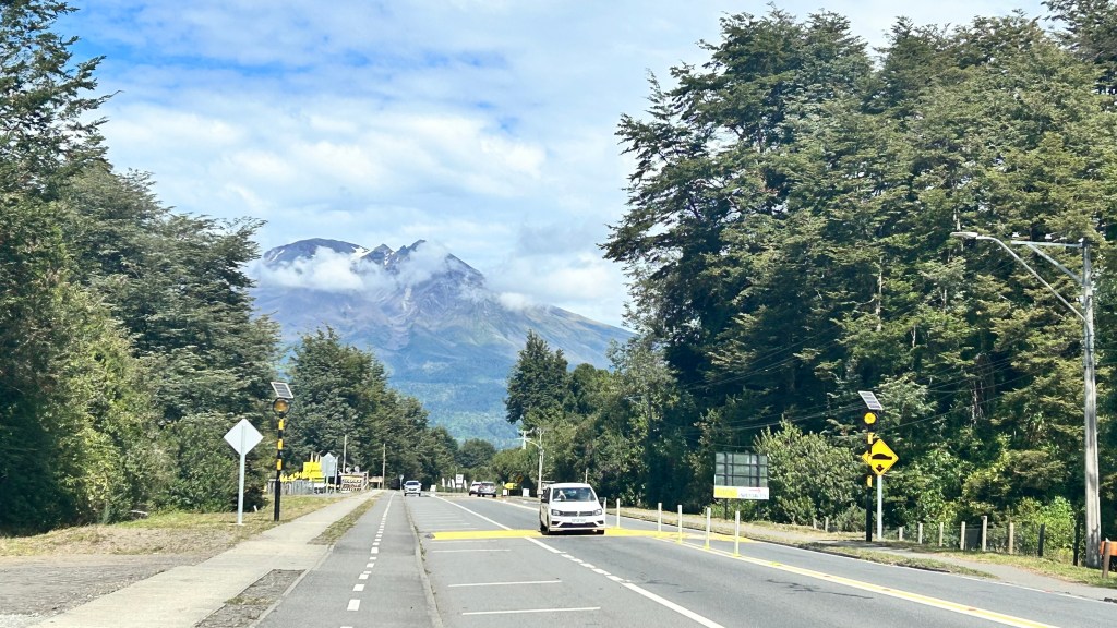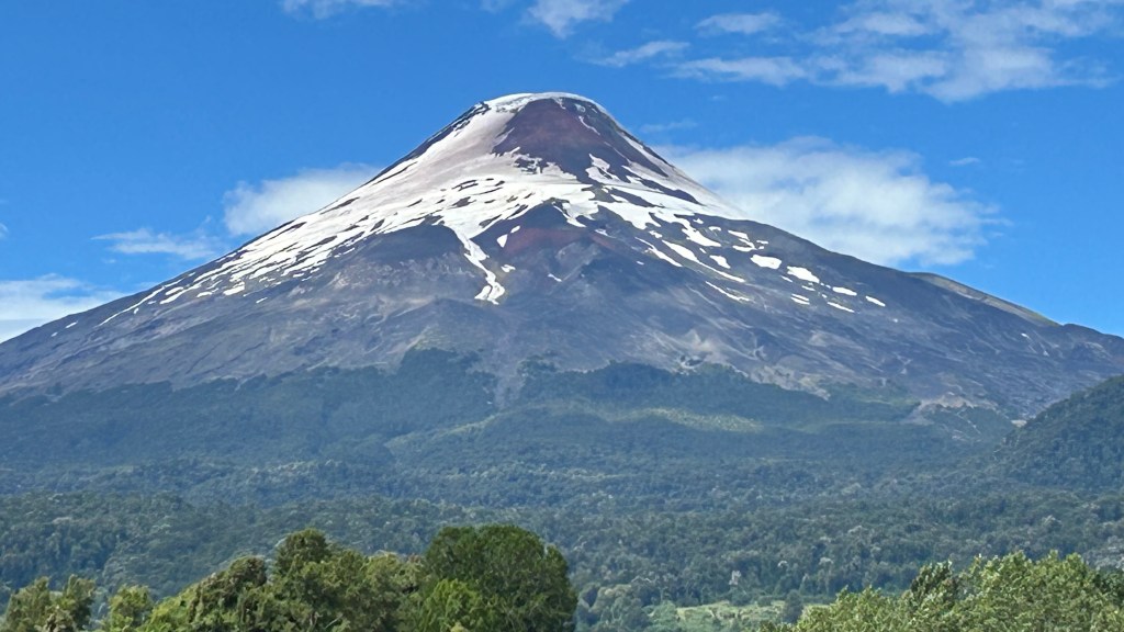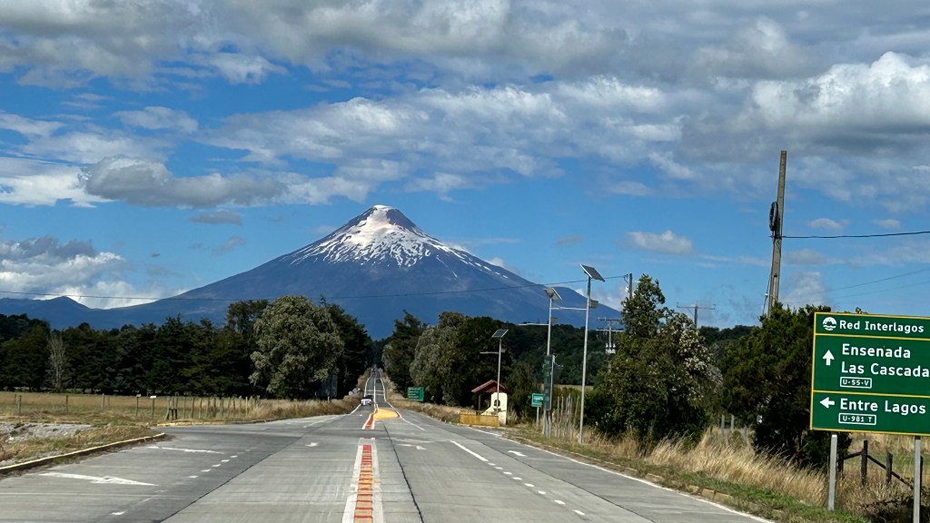 The most stunning sight was undoubtedly Osorno Volcano—a perfect, symmetrical peak, seemingly attempting to imitate its larger counterpart, Mount Fuji, on the other side of the Pacific. As we circled its base, the drive provided us with numerous breathtaking vantage points. Nearby stood its older cousin, Volcán Calbuco—like a grouchy old man with a shaved head. Having erupted 36 times—13 of those in the 20th century—its most recent eruption, without warning, was in April 2015. We can even see him from the balcony of our Airbnb.