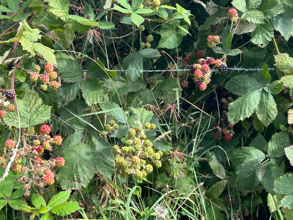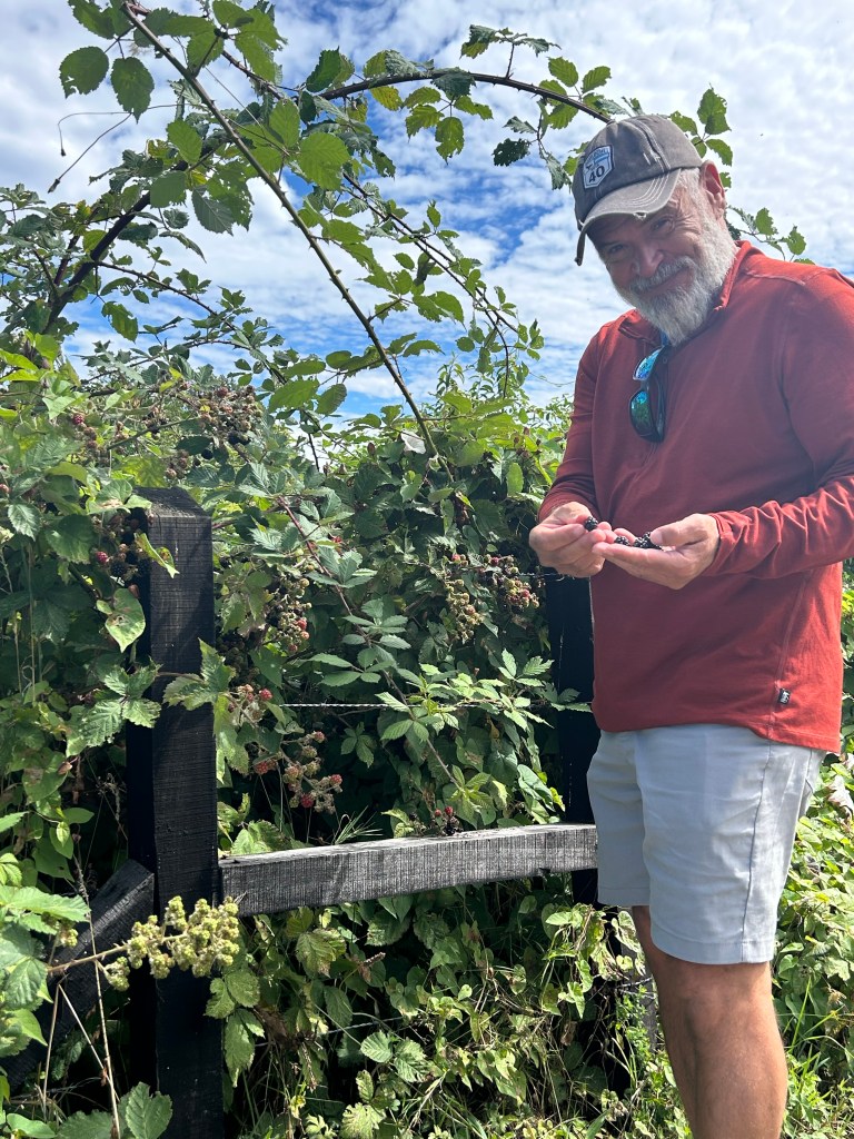 Along the road, we stopped to pick ripe berries, which were both abundant and delicious. When there were no berries to be found, vibrant hydrangea flowers in a spectrum of colors lined the roadside.