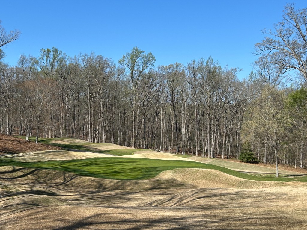 Today, we played Forest Greens Golf Club in Triangle, Virginia. This course, which we’ve enjoyed previously, boasts a wonderful layout. Forest Greens is uniquely situated in a serene setting, free from distractions as there are no homes bordering this classic parkland-style course. Parkland courses, as the name suggests, are designed to resemble playing golf in a park. They are typically well-manicured, featuring man-made elements like dug bunkers, ponds, and built-up rough. Often, they are constructed in locations with less-than-ideal natural conditions, necessitating more intensive and costly maintenance of the grass and soil. Additionally, due to the lack of natural land movement and undulation, course architects must invest significant effort to add intrigue and excitement. A perfect example is the famous Augusta National Golf Club, in Georgia.