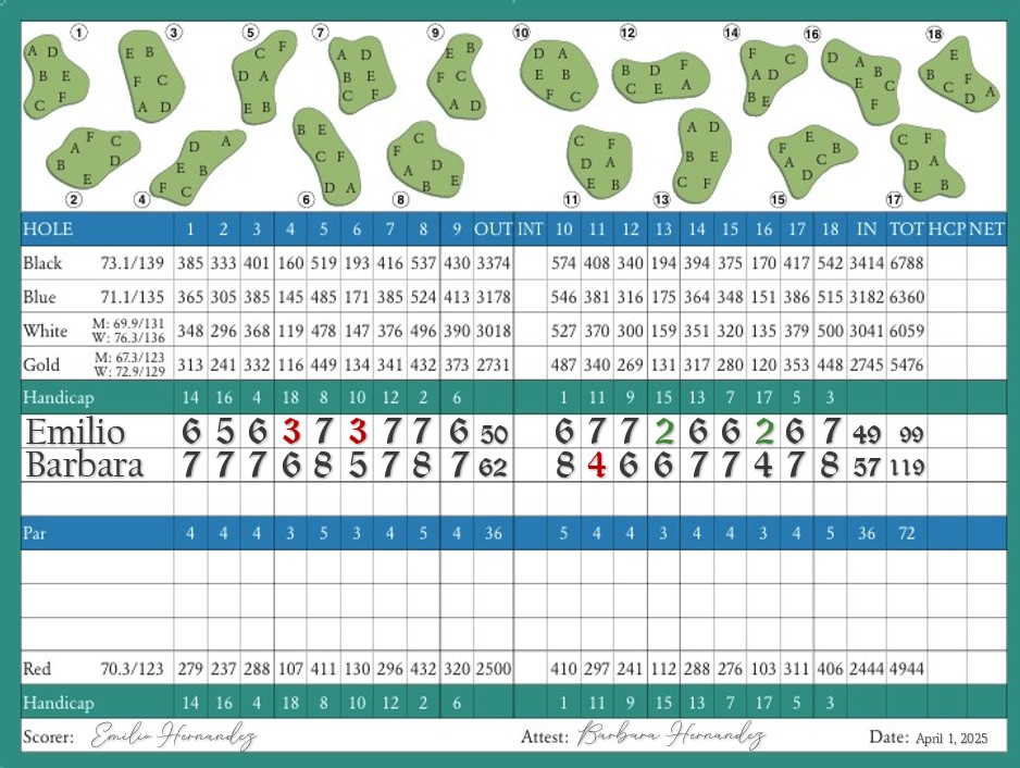 We had a glorious time, as always, at Forest Greens. Despite my final score of 99, I achieved something I never thought possible: I parred or birdied every par three on the course. I doubt I’ll ever repeat this feat, but it will certainly be a story I share at the clubhouse about the day I conquered all the par threes at Forest Greens. Barbara also had a great game, scoring her first-ever par four. We will definitely return to Forest Greens soon and highly recommend this wonderful course.