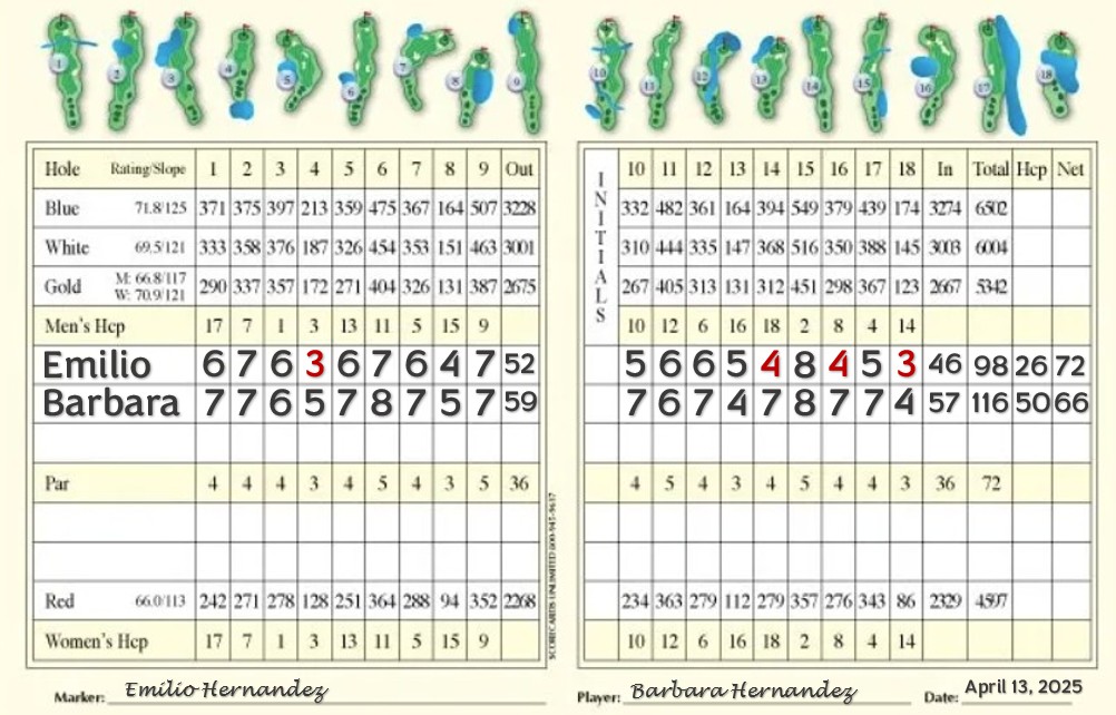 Crown Park is both challenging and fair, with several doglegs that demand careful shot placement. Water plays a big role here. Despite the staff’s effort to mark hazards with bright orange checkered flags, the water still managed to sneak up on us and claim a few strokes.