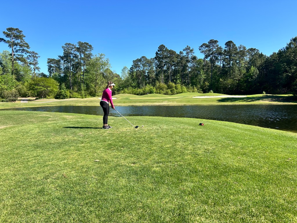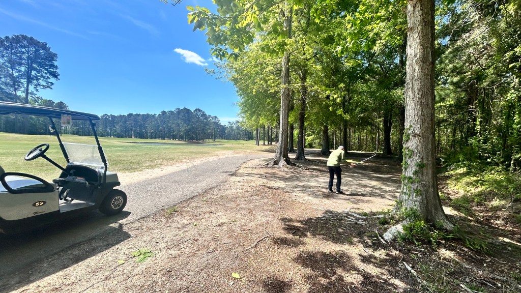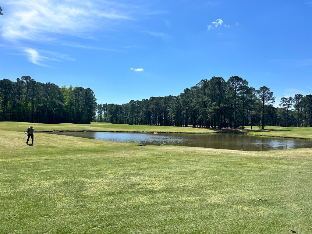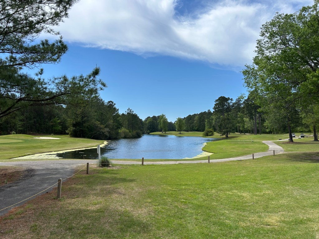 Today, we wandered away from the golf mecca of Myrtle Beach to the small town of Longs, South Carolina. Tucked into a lush pine forest, we found Crown Park Golf Course. It was Sunday at noon—the final day of the Masters Championship—so the course was wide open, as expected.