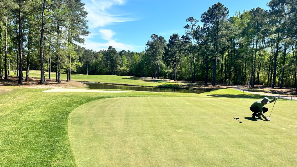 The course is nestled deep in a pine forest, and that’s all you see along the fairways and greens. Loblolly, Longleaf, and Slash Pines dominate the landscape, along with other species common to South Carolina. We soon found ourselves attempting shots from beds of pine straw that lined the fairways.