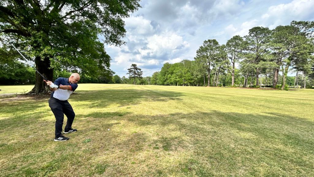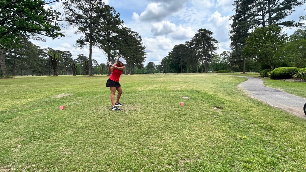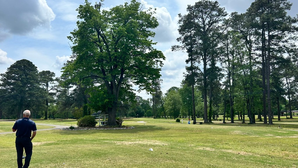 The register attendant, with her small dog at the counter greeted us and got us going quickly. The pro shop has an old-school feel, unlike the courses of today where you often feel like you’re walking into a retail store to be outfitted with new clubs. Lined with hardwoods, the 18-hole course features Bermuda grass greens and over 6,600 yards of fairways. The course is in good condition, although the greens on the first nine holes can use some extra care.