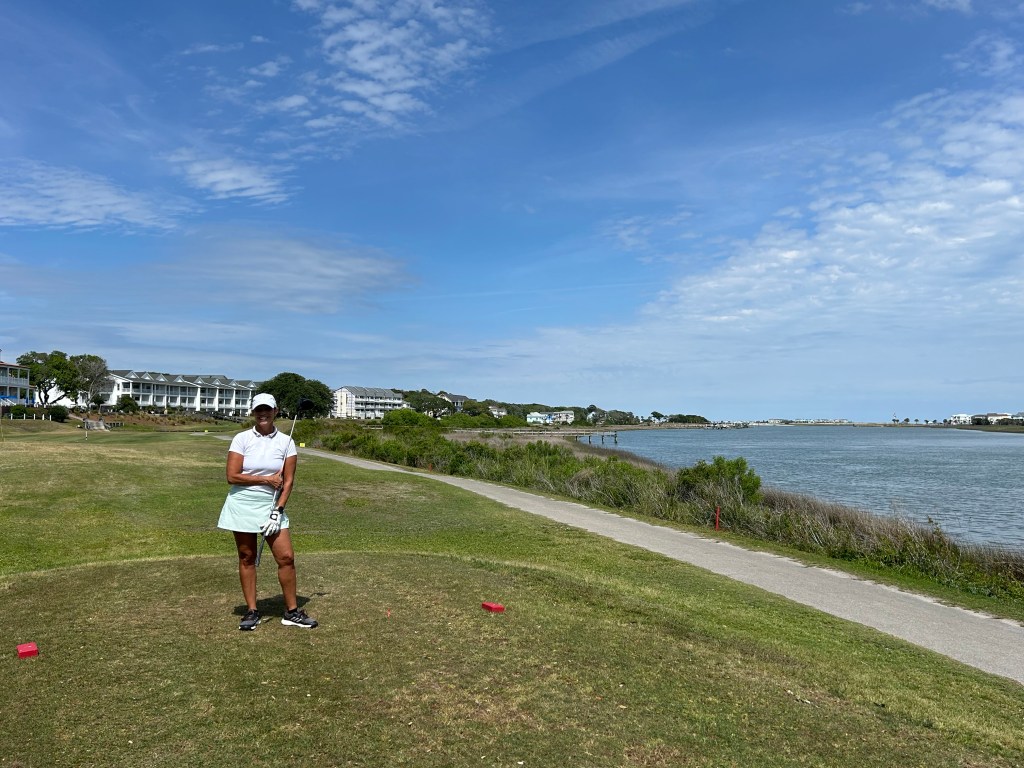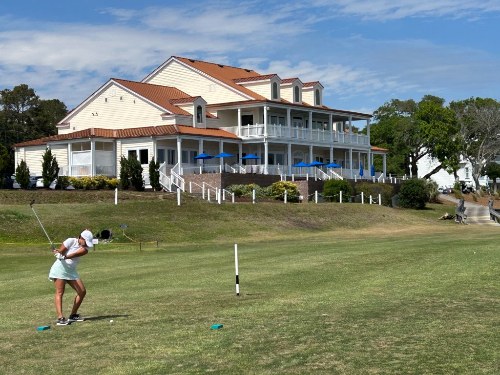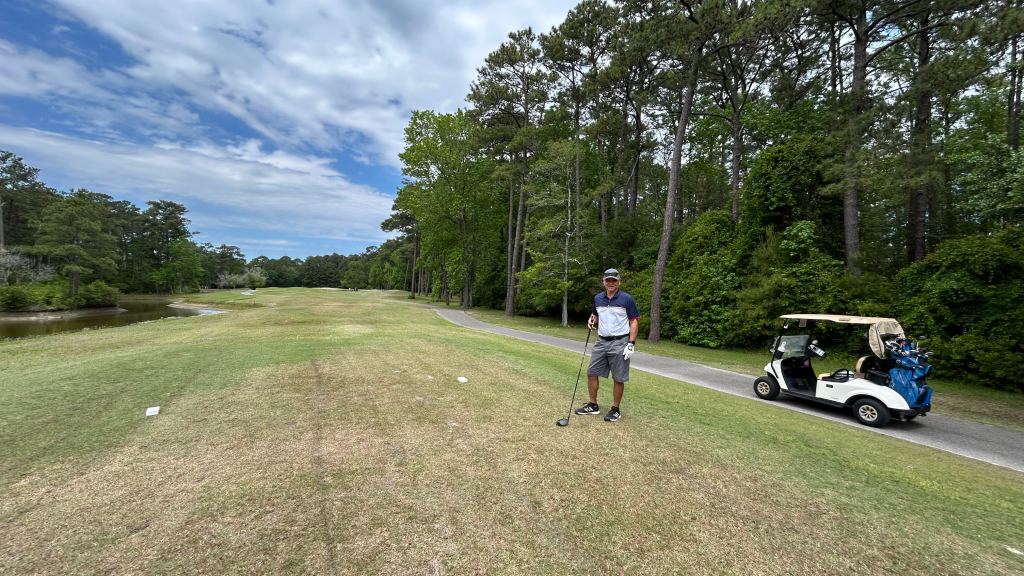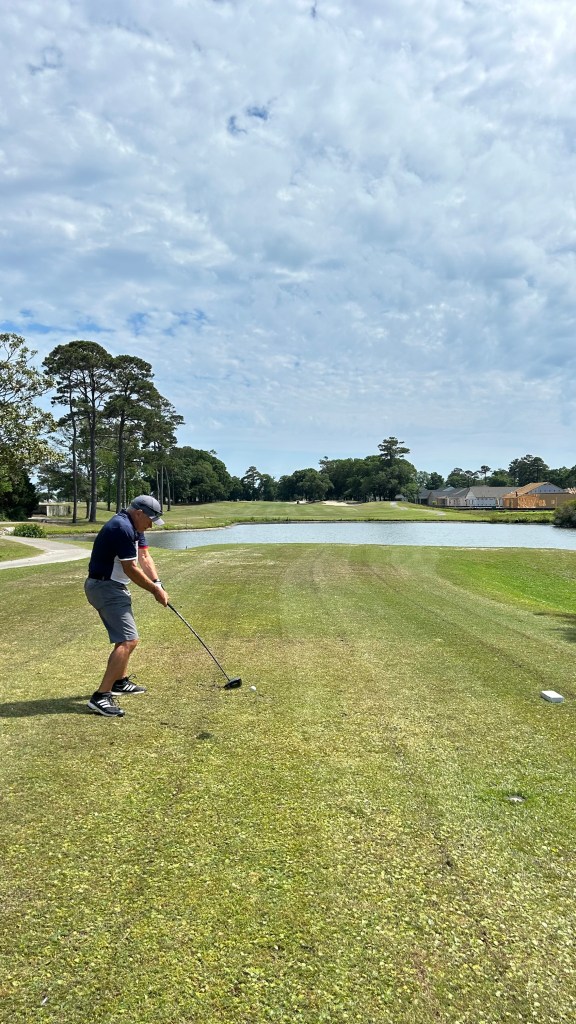 For the past five years, we lived on a sailing catamaran, and we often transited north or south by Ocean Isle Beach. We frequently saw golfers teeing off on holes 1 and 18, which run parallel to the Intracoastal Waterway. We would look on with envy, wondering how nice it must be to be playing golf at that moment. Well, we are wondering no more; today, we got to play at the very course in question, The Links at Brick Landing. With this experience in hand, by the time we reached the 18th hole, we wondered how nice it must be to be sailing instead of playing golf.