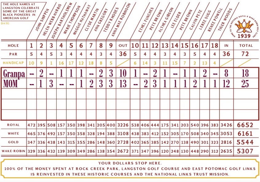 Today marked our first annual Mother’s Day family golf tournament at Langston Golf Club in Washington, D.C. The match pitted mother and son against grandpa and grandson in an 18-hole best ball format. It was a glorious day; the sunny weather and barely 65-degree temperature created perfect playing conditions. We teed off at 3 p.m. and competed fiercely throughout the round, but ultimately, grandpa and grandson emerged victorious. It was a fantastic family day, which we capped off with burgers on our son’s apartment terrace, offering a lovely view of the Capitol Building and the Washington Monument.