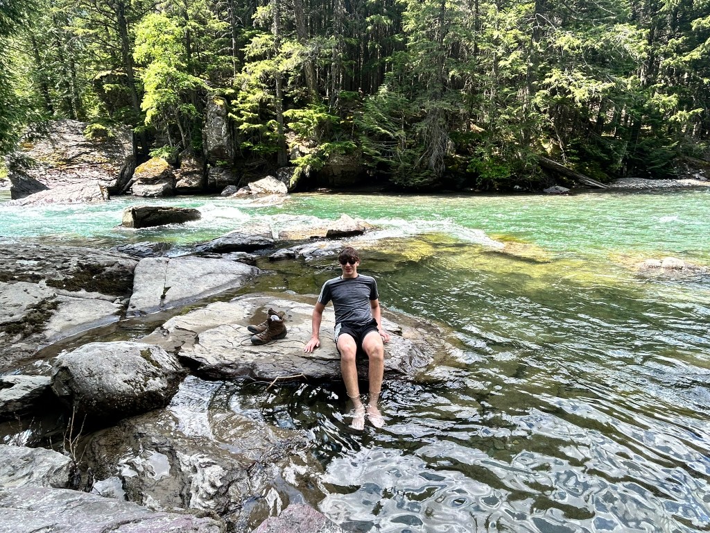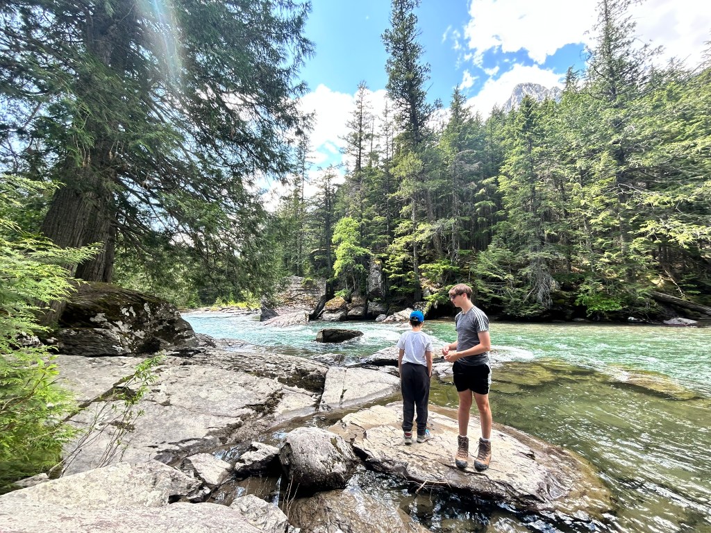 We parked at the Avalanche Campground, which isn’t open for camping yet, and headed north. We hiked about six miles, stopping several times to play in and around McDonald Creek. Calling this body of water a “creek” feels like an understatement—millions of gallons of water rush down to feed the large Lake McDonald at the south end of the park.
