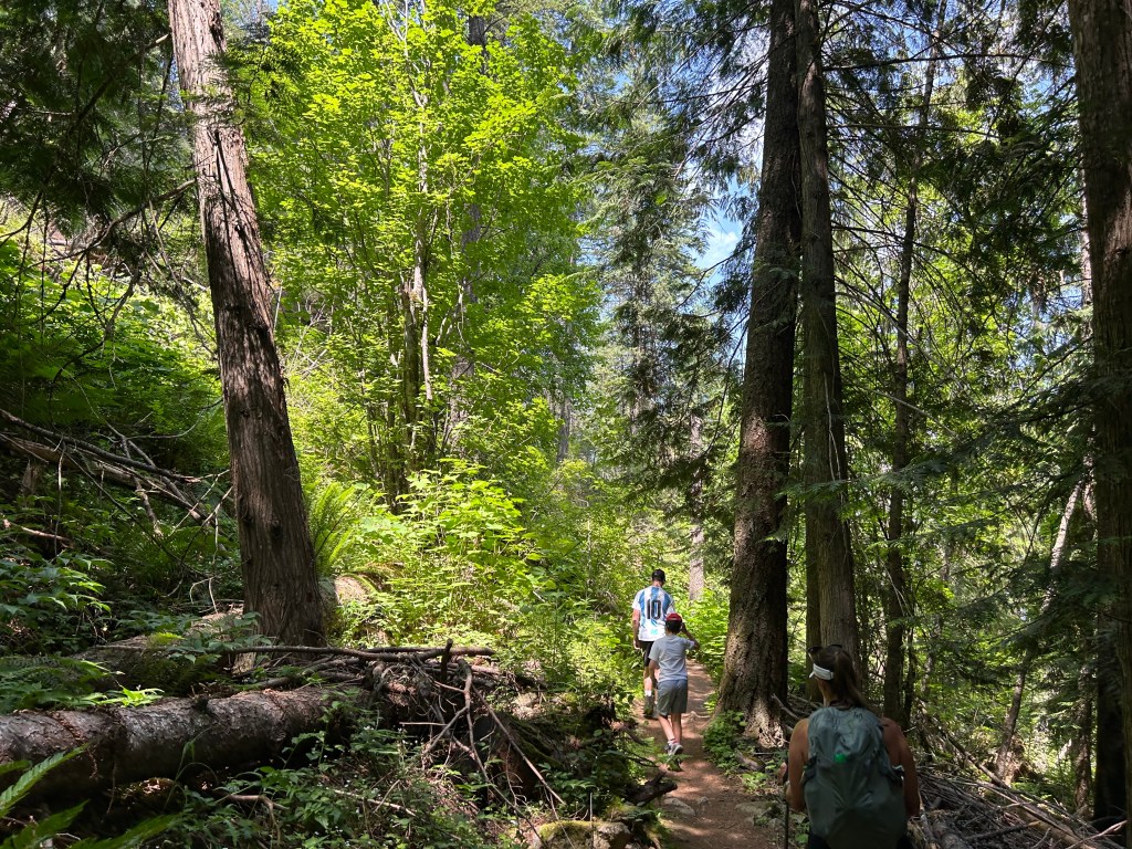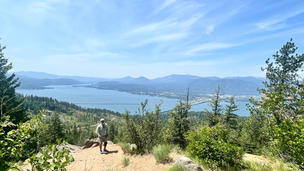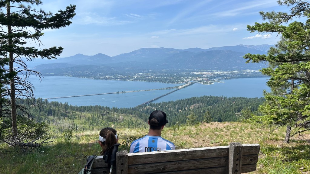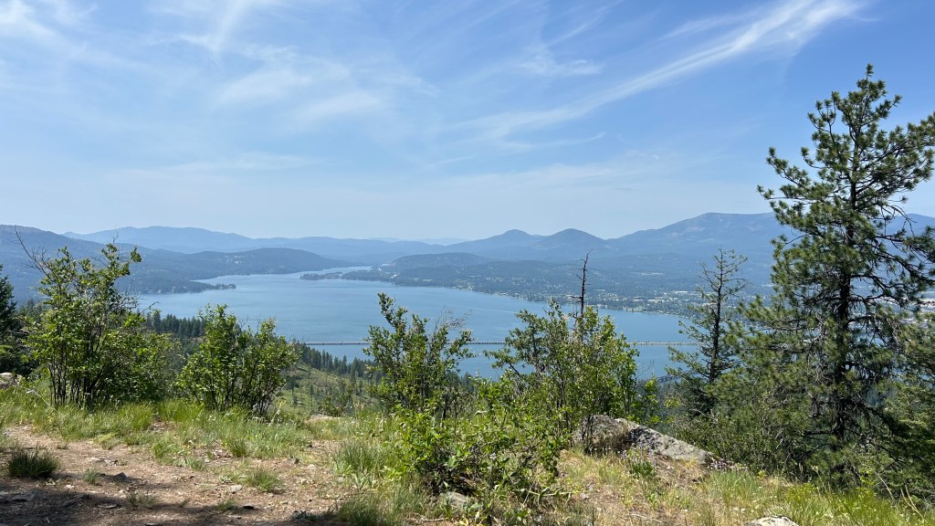 Today, we decided to hike the Gold Hill Trail. It is an impeccably maintained 7.8-mile trail with 1,657 feet of elevation change. The trail is a constant ascent to the top, where you’re rewarded with two incredible viewpoints of Lake Pend Oreille, the largest lake in Idaho. From the top, we had a full panoramic view of Sandpoint, with its prominent beach park on the lake and the famous Cedar Street Bridge.