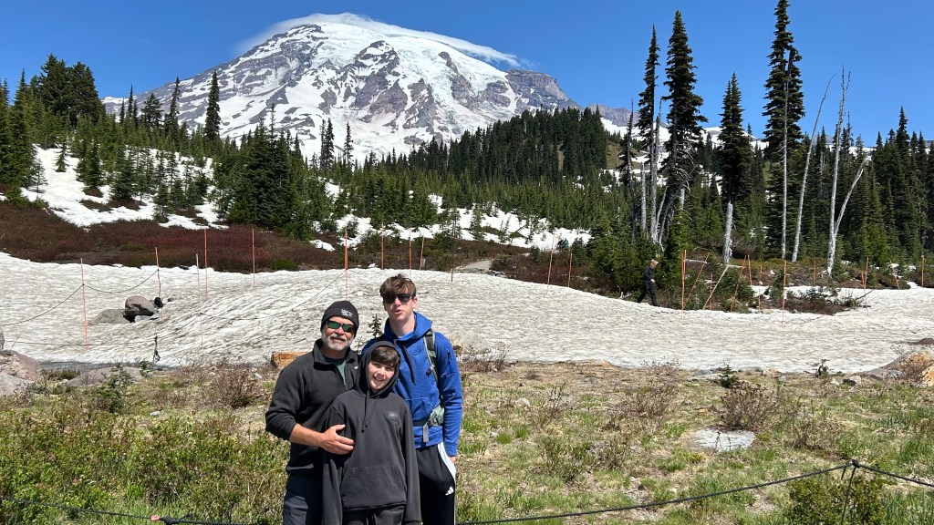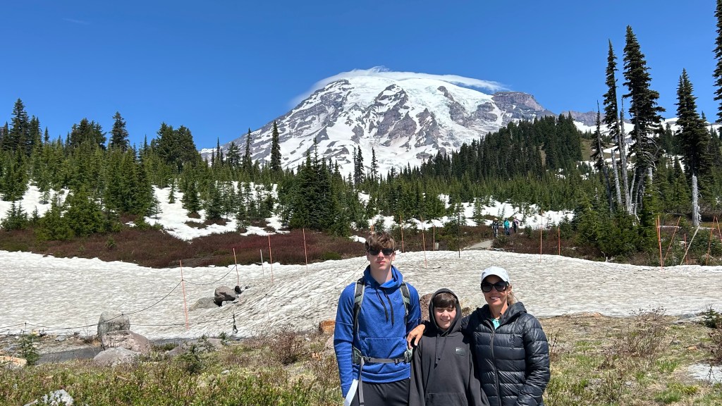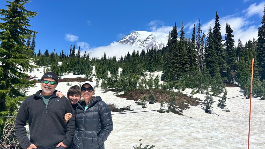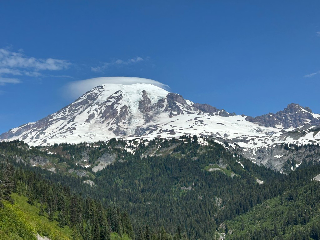 This week has certainly been a highlight of our trip: our long-awaited visit to Mount Rainier National Park. Mount Rainier is an awe-inspiring sight; its summit, at 14,410 feet, dwarfs the nearby mountains in the Cascade Range, which are beautiful in their own right. Mount Rainier, also known as Tahoma, is a picture-perfect volcano from every angle and is easily admired from many miles before you even arrive at its base.