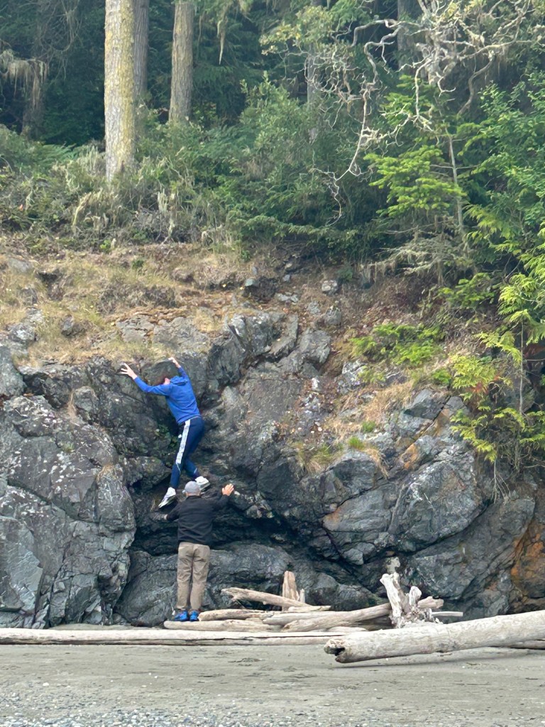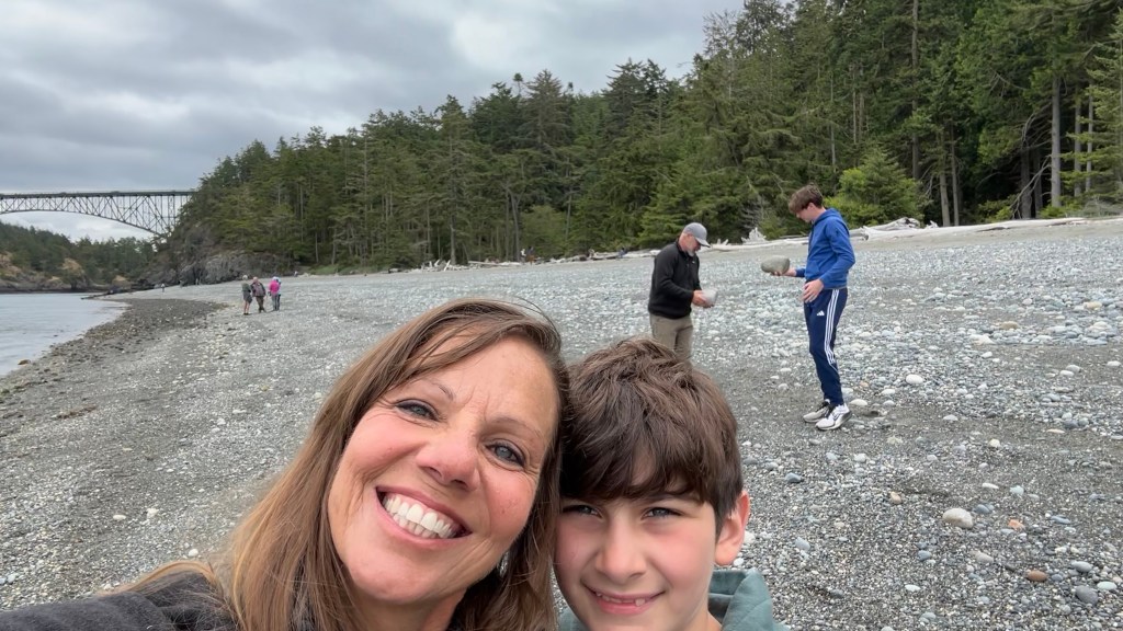 We started our hike from the bridges down to the beach. We had perfect timing, as the tide was out, exposing most of the beach. The tidal flow and whirlpools beneath the twin bridges connecting Fidalgo Island to Whidbey Island move quickly; the current reaches speeds of about 8 knots, flowing in opposite directions between ebb and flood. This swift current can lead to standing waves, large whirlpools, and roiling eddies visible from the twin bridges’ pedestrian walkways or from the trail leading below the larger south bridge from the parking lot on the Whidbey Island side.