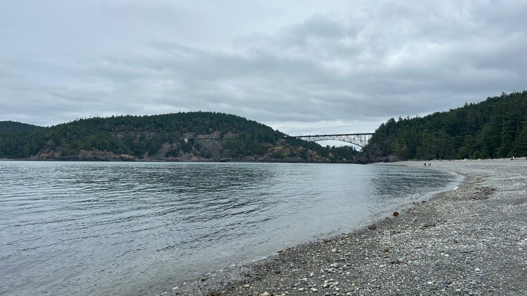 Today, we spent the day at Deception Pass State Park. Deception Pass is a strait separating Whidbey Island from Fidalgo Island in the northwest part of the U.S. state of Washington. It connects Skagit Bay, part of Puget Sound, with the Strait of Juan de Fuca. A pair of bridges, known collectively as Deception Pass Bridge, cross Deception Pass. The bridges were added to the National Register of Historic Places in 1982.