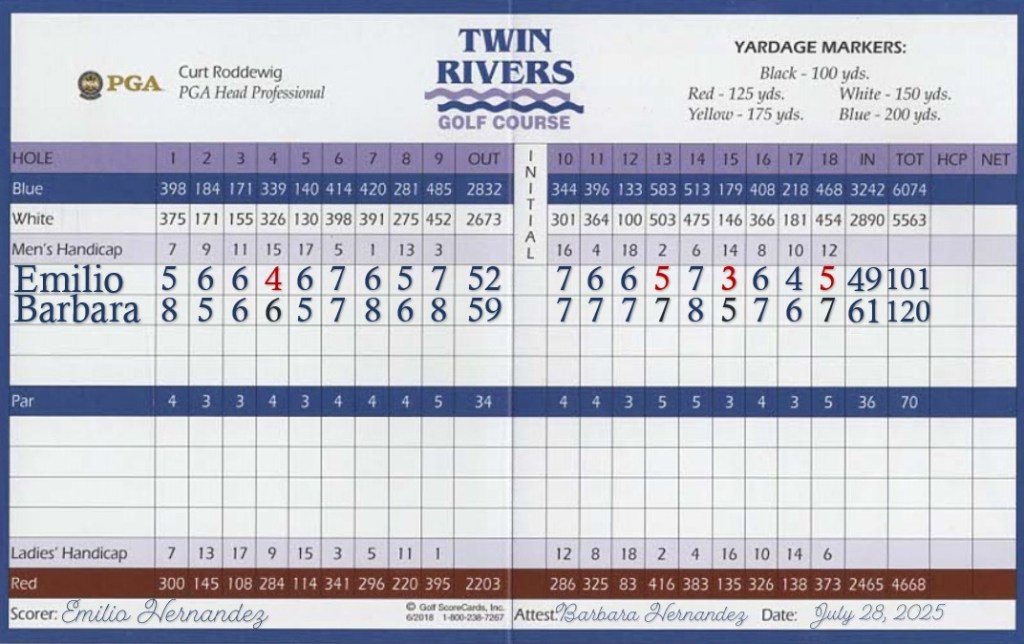 Today, we returned to the golf course, eager to play after a two-month hiatus. The weather was perfect as we ventured east of Seattle to Twin Rivers Golf Course. We arrived early and were quickly sent off. When I asked the attendant about the course’s most unique feature, he quipped, “This is not a Golf Country Club; it is a Golf Club in the Country.”