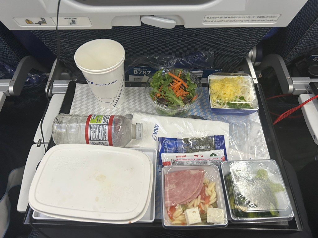 We departed Seattle late afternoon and arrived at Haneda Airport in Tokyo early the next evening. ANA Airlines was excellent; our economy-class seats were large and had plenty of legroom. The food was also excellent. For dinner, we were served four small salads with a variety of flavors and honey chicken and rice, accompanied by our beverage of choice. Tea was served several times throughout the flight, and breakfast included a ham sandwich, fruits, and yogurt with orange juice and tea.