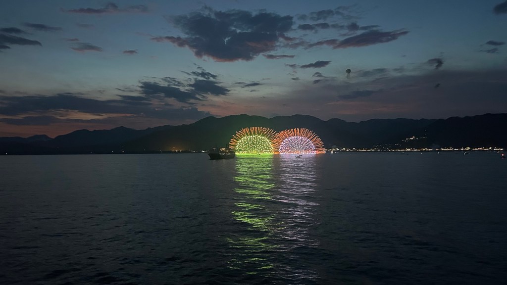 We anchored off the coast of Kumano to witness the longest running and most beautiful fireworks of our lives.
