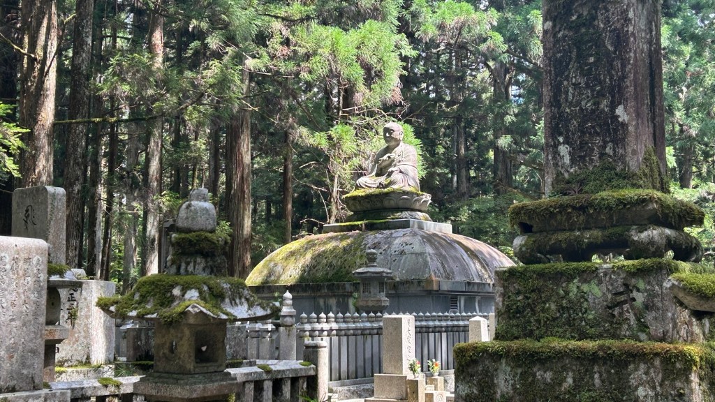 We rented a car at Wakayama Station and drove about an hour through winding mountain roads to reach this sacred site. Once there, we explored numerous temples, shrines, historic structures, and finally, the renowned Okunoin Cemetery.