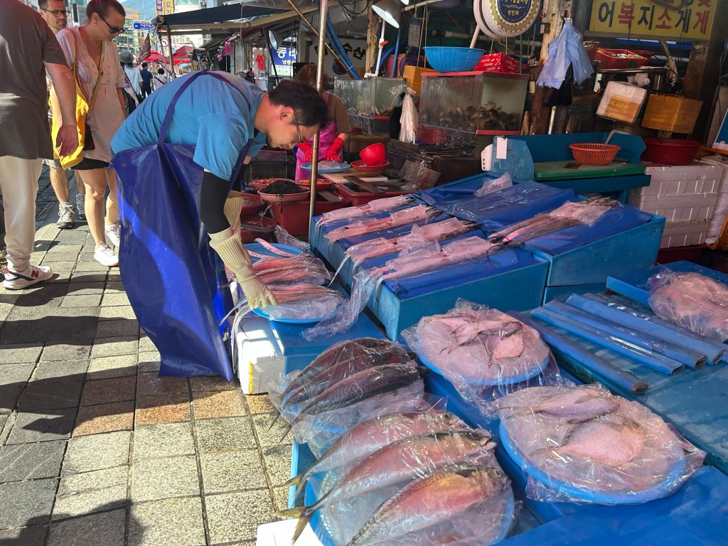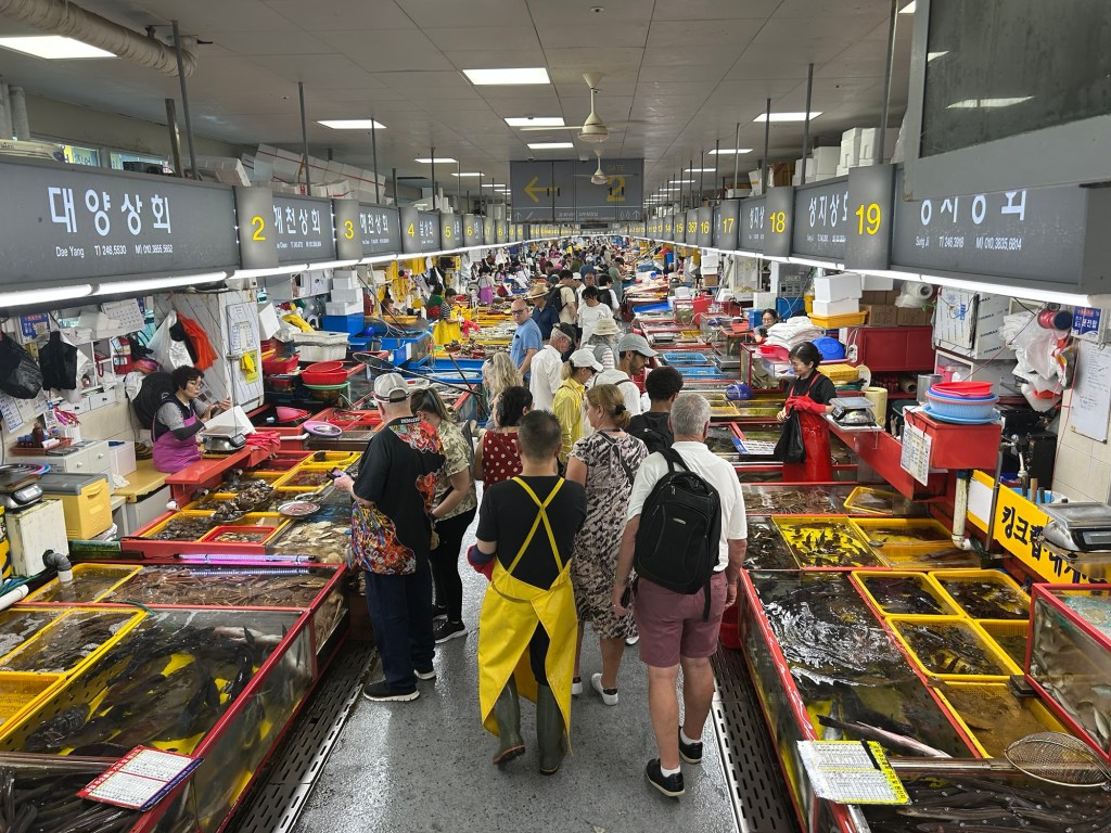 Our final stop was the famous Jagalchi Fish Market, Korea’s largest seafood market. Here, we were overwhelmed by the vast selection of sea creatures—some we couldn’t even name—all alive and wriggling in tanks. You can select your seafood and have it prepared on the spot at a restaurant on the second floor. It was a raw, eye-opening experience we won’t forget anytime soon.