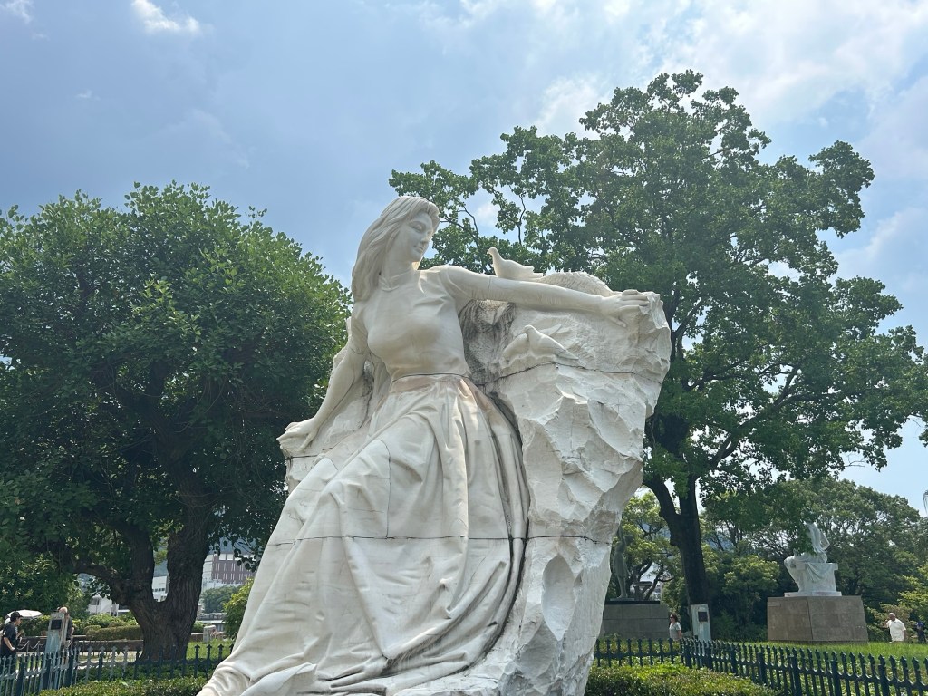 The Peace Memorial Park, by contrast, offers an atmosphere of serenity. Its tranquil surroundings invite quiet reflection and inspire hope for the future of humanity. Scattered throughout the park are monuments and statues donated by countries around the world, all promoting the message of peace. At the center stands the towering Nagasaki Peace Statue, a striking blue figure symbolizing both prayer for the victims and a call for global harmony.