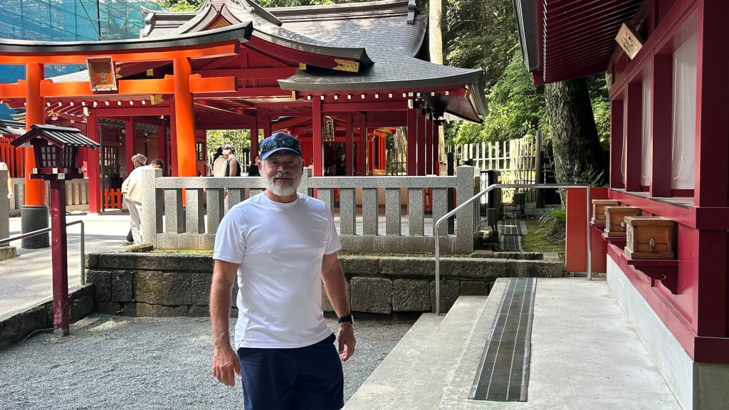 When we arrived in Hakone, our first stop was Hakone Shrine. This centuries-old Shinto shrine, famous for its bright red torii gates that seem to float on the waters of Lake Ashi, is tucked away in a forest at the base of Mount Hakone. After climbing hundreds of stone steps through towering cedar trees, we reached the main shrine, where the peaceful atmosphere felt worlds away from the busy tourist streets nearby.