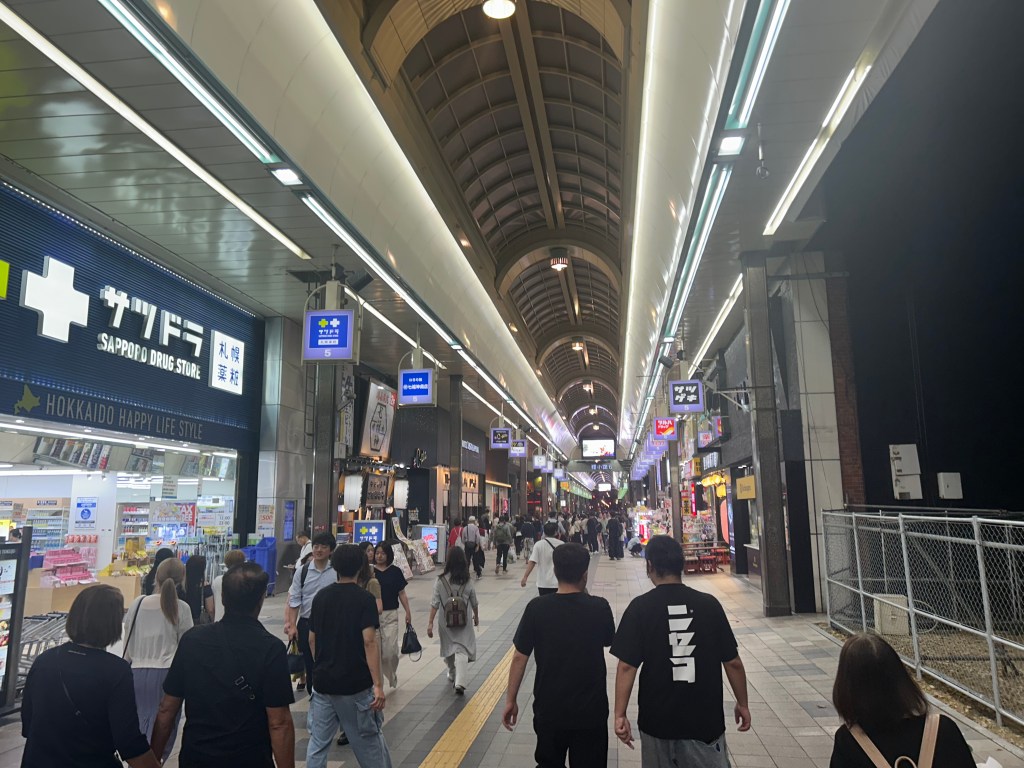 By 8 p.m., we were on the hunt for dinner in the busy streets of Sapporo, the island’s capital and largest city. It seemed like everyone was out, and finding a restaurant without a reservation was a challenge. We finally stumbled upon Umie Minamisanjo and had some incredible sushi. We decided to expand our sashimi experience to include local specialties like King Crab and Scallops, which were both wonderfully fresh and delicious.