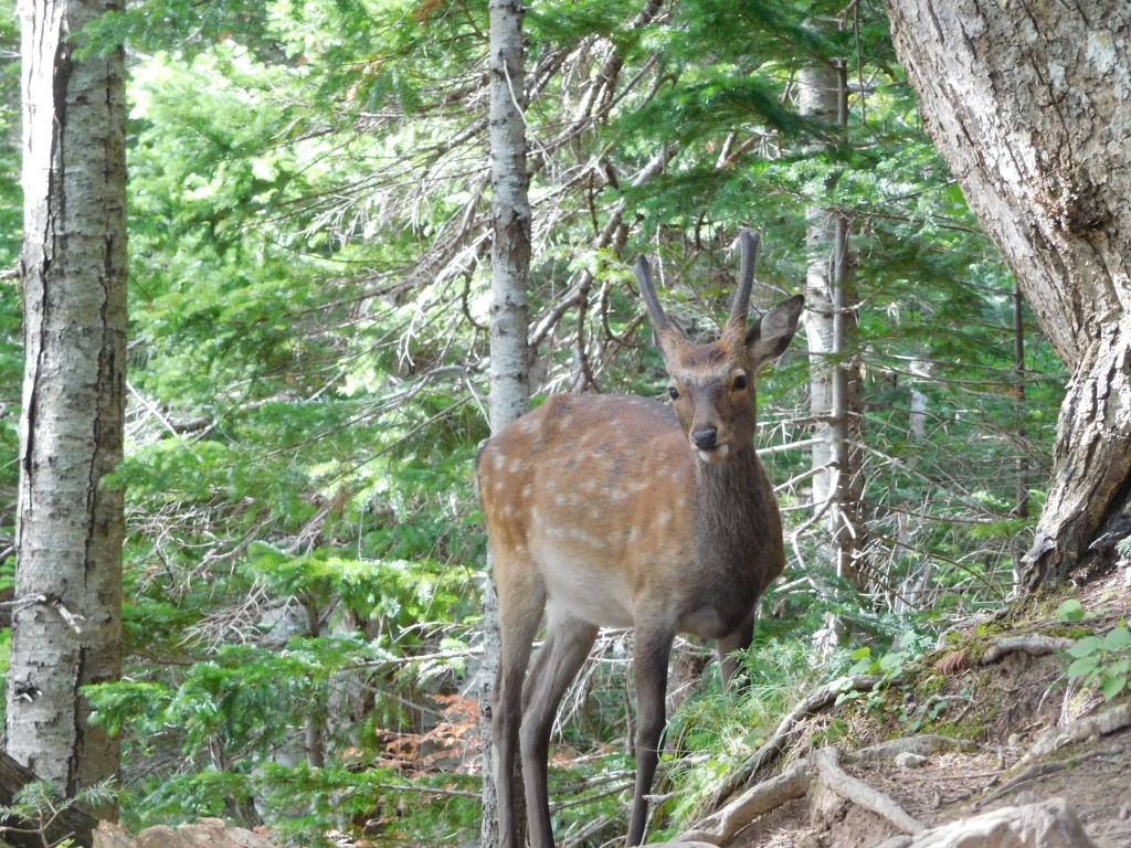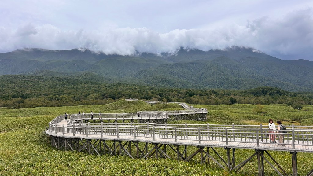 After leaving the Nature Center, we turned onto the pass road, heading southeast toward the Goko Lakes. This area offers two distinct trails that lead into a protected park preserve and provide stunning views of the five lakes. One trail is an elevated boardwalk, offering protection from bears with electric fencing. The longer ground-level path requires visitors to attend a 15-minute presentation on bear safety. There is legitimate concerns as the number of aggressive encounters between humans and bears in Shiretoko is on the rise, leading to a fatal encounter just a month ago. We felt relatively safe in the large group taking on the path They were all carrying bear bells of all sizes and tunes, we figured we would be walking in the midst of a bell orchestra that would torment any bear within a mile. Despite our careful observation, the only wildlife we encountered was a Sika deer blocking our way.