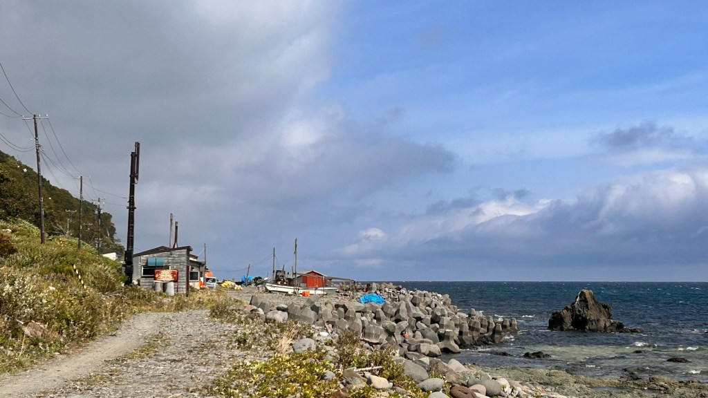 Continuing our journey southeast from the lakes, we made our way to the town of Rausu, stopping for a picture of the mountain along the way. Rausu, a town with the feel of a fishing village, appeared to be wrapping up its fishing season, with most fishermen busy gathering and storing their nets. The main source of income from the sea in Rausu seems to be the harvesting of Kombu, or kelp. They cultivate it on long lines suspended underwater and then process it for use in various Japanese dishes.