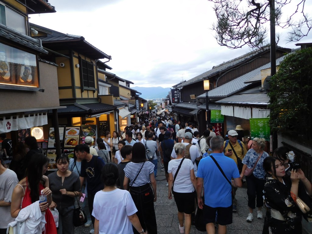 After much maneuvering through the crowds, we were able to escape and head into the city, where we meandered until evening. The city sidewalks were also crowded. We are hoping that our next seven days in Kyoto will prove more peaceful than yesterday and that we can find some peace and solitude somewhere in this land of temples and shrines.