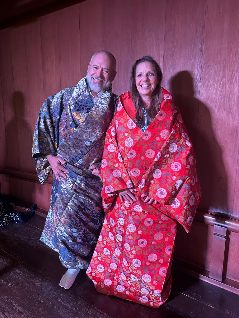 Attending Miwa was an experience we won’t soon forget. The intimacy of the setting, the powerful voices and drums, and the dance movements transported us to another dimension—we may have even time-traveled for a bit. I asked Yamamoto-san this question: “Noh has been around for over a thousand years; do you think it will last another thousand?” His answer was, “As long as there is Japanese people, there will be Noh.”