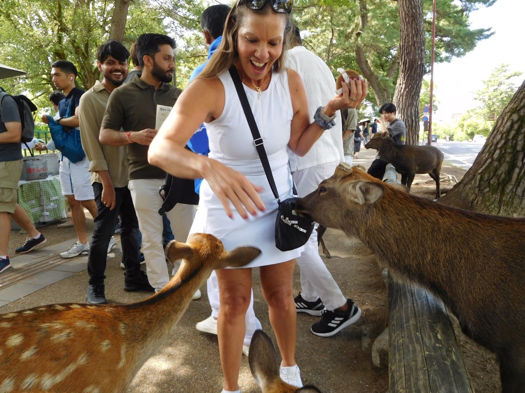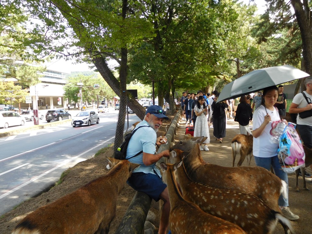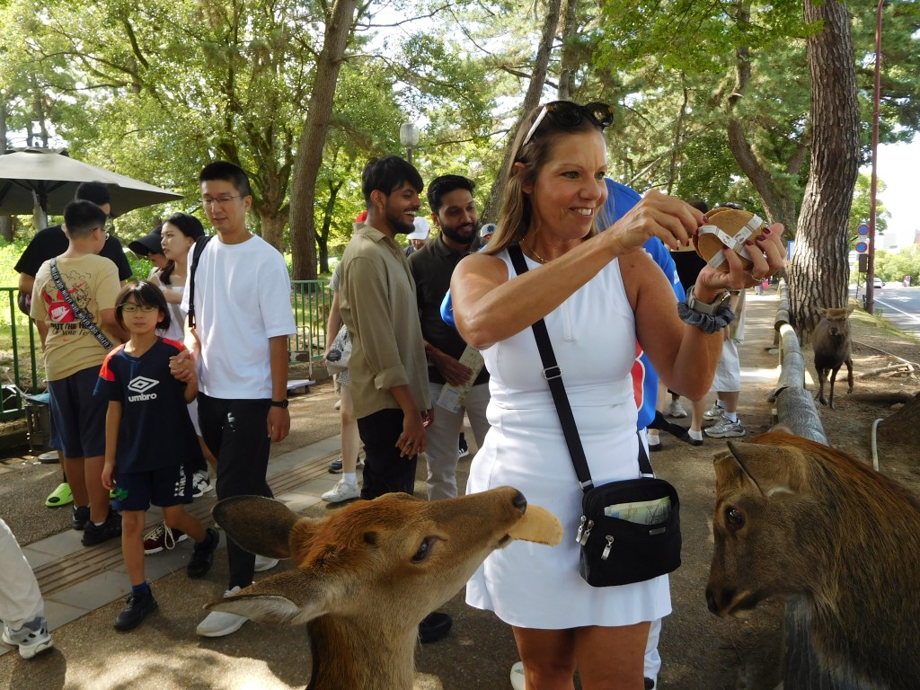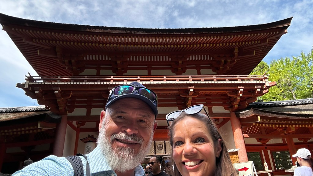 Today we took the train from Kyoto to Nara, Japan. Nara is a city steeped in history and culture. It served as Japan’s first permanent capital from 710 to 784, a period known as the Nara period, which saw a flourishing of Buddhist culture. The city is home to numerous temples and shrines, many of which are designated as UNESCO World Heritage sites under the “Historic Monuments of Ancient Nara” listing. These include Tōdai-ji Temple, which houses the world’s largest bronze Buddha statue, and Kasuga Taisha Shrine, famous for its thousands of stone and bronze lanterns.