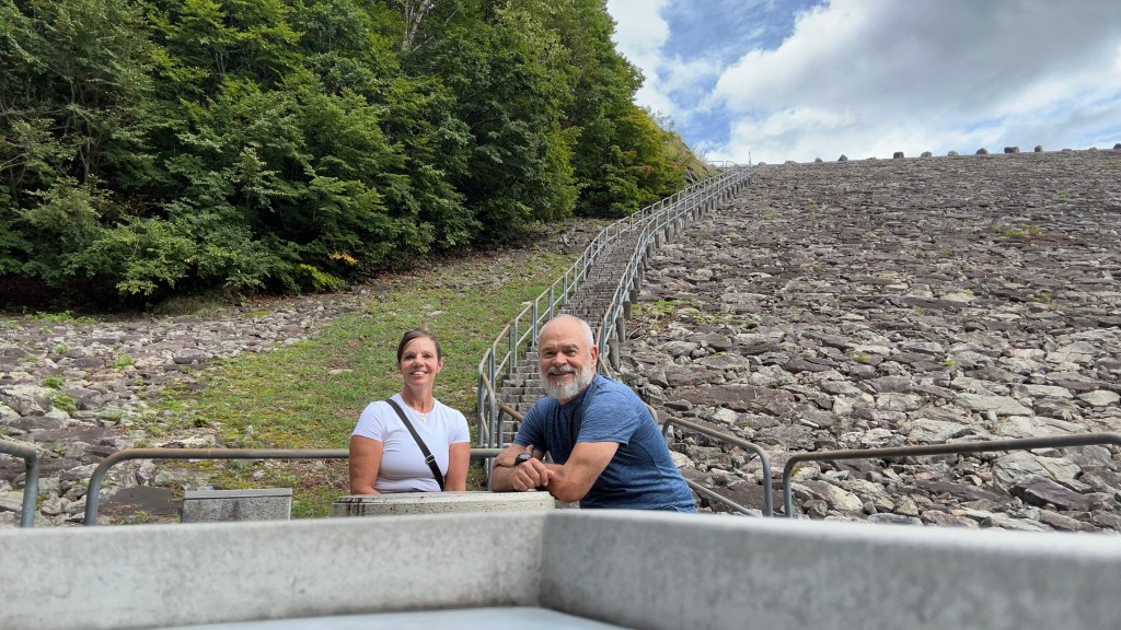 We initially pulled over to the side of the road to admire its construction, but upon closer inspection, we noticed a set of steps leading to the very top, so we decided to go on a “dam hike!” After 724 steps, we reached the summit, where we found the Dam Museum and Observatory called “Hilltop Naramata.” It offered us a great insight into the construction and purpose of the dam, along with panoramic views of both the lake and the downstream area, and the surrounding mountains.
