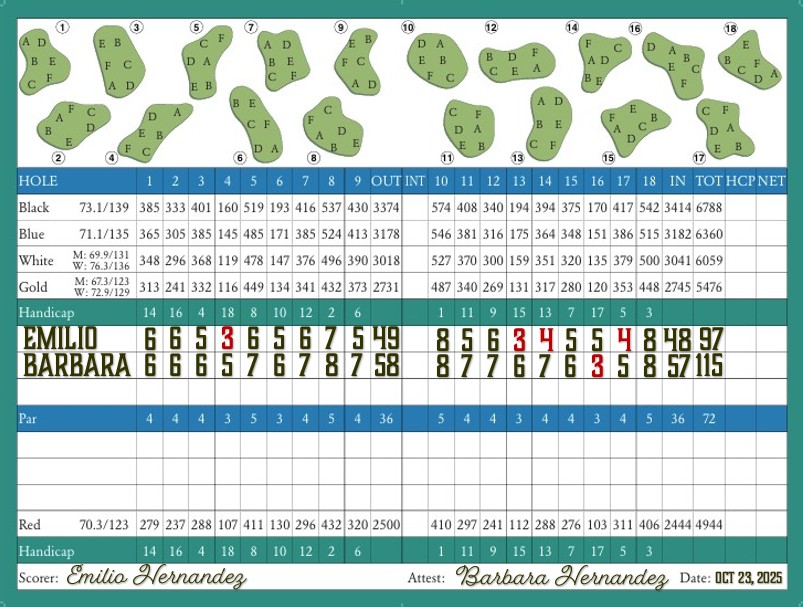 We had a wonderful time and the course was in excellent shape. We were blessed with perfect weather, and the beautiful fall colors all around us made for a truly scenic and memorable round.